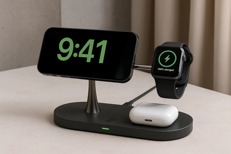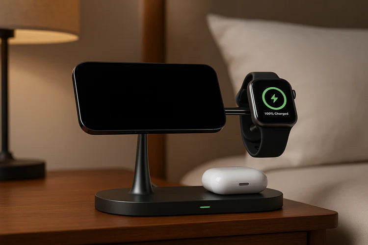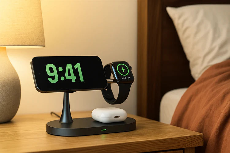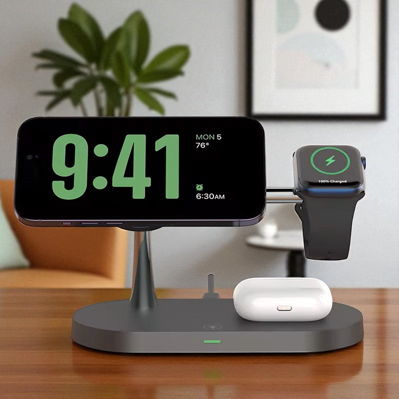 Cette station de charge 3-en-1 ne se contente pas de recharger vos appareils — elle simplifie votre quotidien. Fini les câbles emmêlés, les prises surchargées ou les appareils oubliés déchargés. Grâce à son design tout-en-un et sa veilleuse douce, elle apporte une solution élégante pour une routine plus zen, organisée et technologique. Que vous soyez à la maison ou au bureau, tout est sous contrôle, au bon endroit, au bon moment.